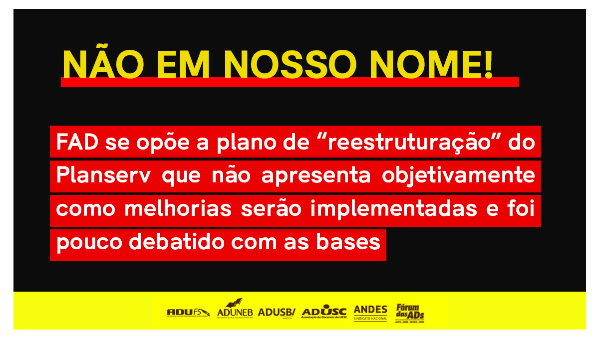 Nos dois últimos meses, o governo da Bahia discutiu uma proposta de reestruturação do Planserv com algumas entidades sindicais do funcionalismo. O Fórum das ADs foi convidado a participar das reuniões a partir de 13 de outubro. A coordenação do FAD, exercida pela ADUNEB, esteve presente em duas reuniões em outubro e quatro em novembro.