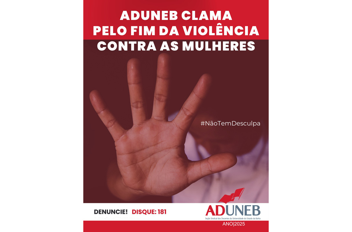 A Coordenação da ADUNEB, absolutamente indignada, vem a público clamar por um basta à violência contra as mulheres! As bárbaras ocorrências e casos de feminicídio ocorridos nos últimos dias deixam ainda mais evidentes que o machismo estrutural brasileiro, um mecanismo secular de ceifar as vidas das mulheres, precisa ser interrompido.