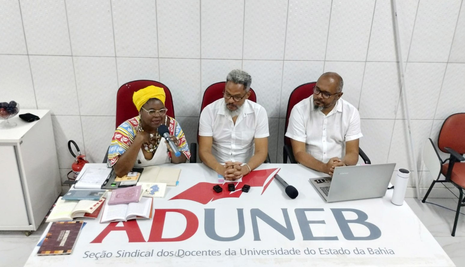 A mesa redonda “Interconexões entre etnia e gênero na prática docente no ensino superior”, promovida pela ADUNEB na última sexta-feira (28), encerrou de maneira potente a agenda de atividades da seção sindical relacionadas ao Novembro Negro. O evento foi realizado em Salvador, com transmissão ao vivo pelo Youtube (assista aqui), e teve como conferencistas a Pró-Reitora de Ações Afirmativas da UNEB, Dina Maria Rosário dos Santos, e o Coordenador de Finanças da ADUNEB, Fábio Ronaldo da Silva. A mediação foi do professor Edson Fernando Oliveira Silva, Coordenador de Subseções Departamentais da Seção Sindical.