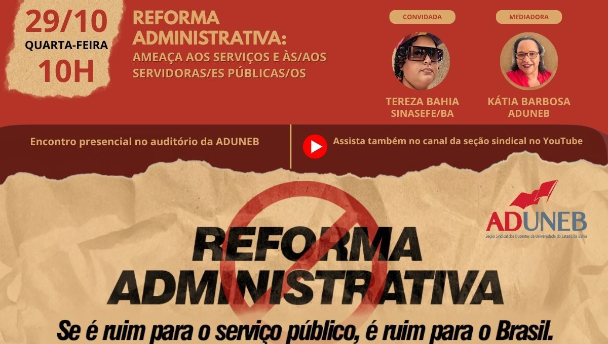 ADUNEB organiza a palestra Reforma Administrativa: ameaça aos serviços e às/aos servidoras/es públicas/os