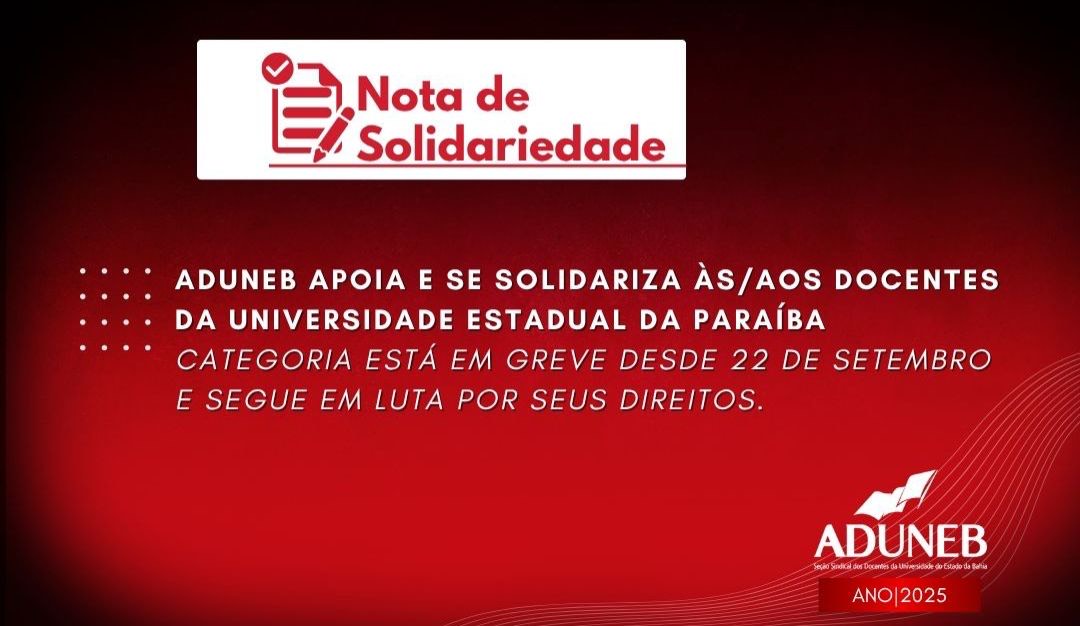 ADUNEB apoia e se solidariza às/aos docentes da Universidade Estadual da Paraíba