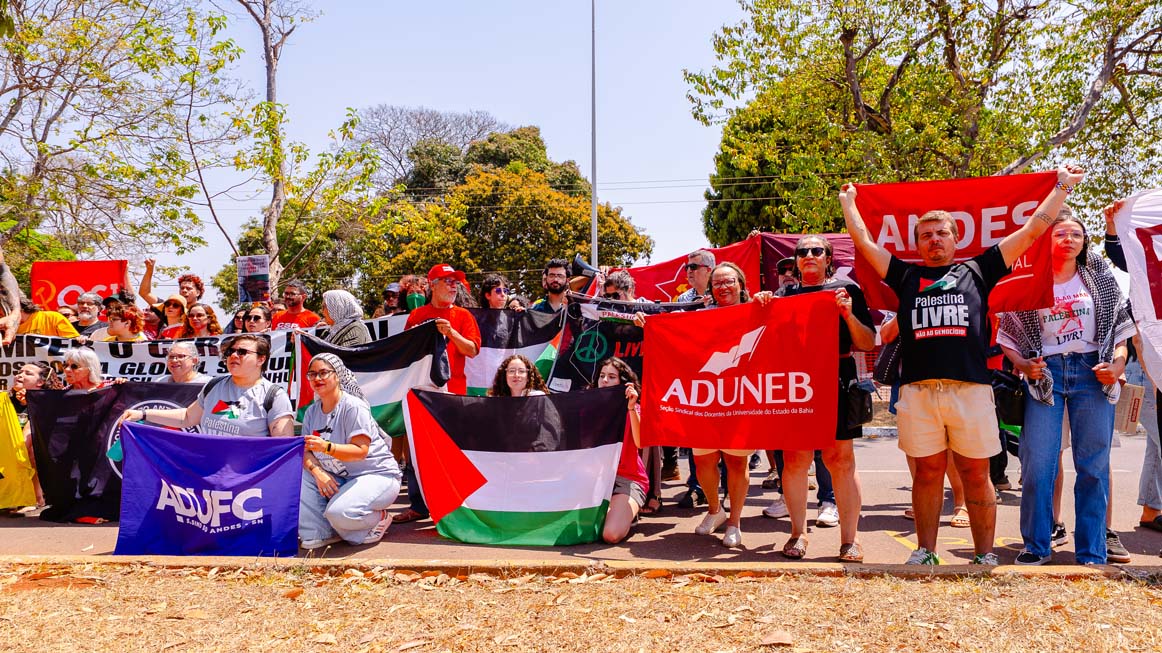 ADUNEB participa de protesto contra o genocídio na Palestina em frente à Embaixada de Israel
