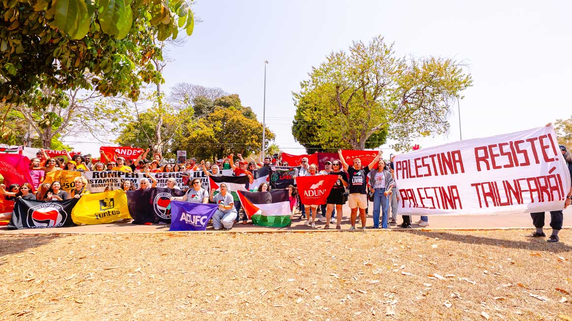 Sob palavras de ordem como "Estado de Israel, Estado assassino. E viva a luta do povo palestino", a ADUNEB participou do protesto simbólico que aconteceu no sábado (13), em frente à Embaixada de Israel, em Brasília. A Seção Sindical foi representada pela Coordenadora de Comunicação, Kátia Barbosa, que estava na Capital Federal para participar do Grupo de Trabalho de Comunicação e Artes, do ANDES-SN. A mobilização, organizada por mais de 20 entidades de movimentos sociais e coletivos estudantis, com o apoio do ANDES-SN, foi uma corrente solidária e humanitária que ocorreu simultaneamente em várias cidades do país.