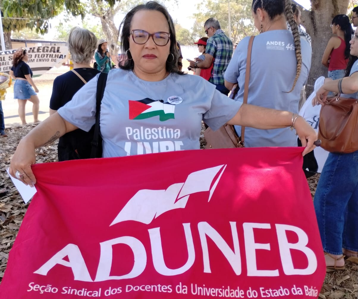 Para a professora Kátia Barbosa, assistir ao genocídio do povo palestino é algo desesperador para quem tem um mínimo de sensibilidade humana. "Do ponto de vista pessoal, me senti no dever de fazer parte, ainda que uma pequena parte. No que diz respeito à ADUNEB, direitos humanos e justiça social são valores que estão entre os princípios fundamentais da Seção Sindical. Por isso, é uma obrigação estar junto a todos os demais movimentos sociais presentes em solidariedade ao povo palestino", encerrou.